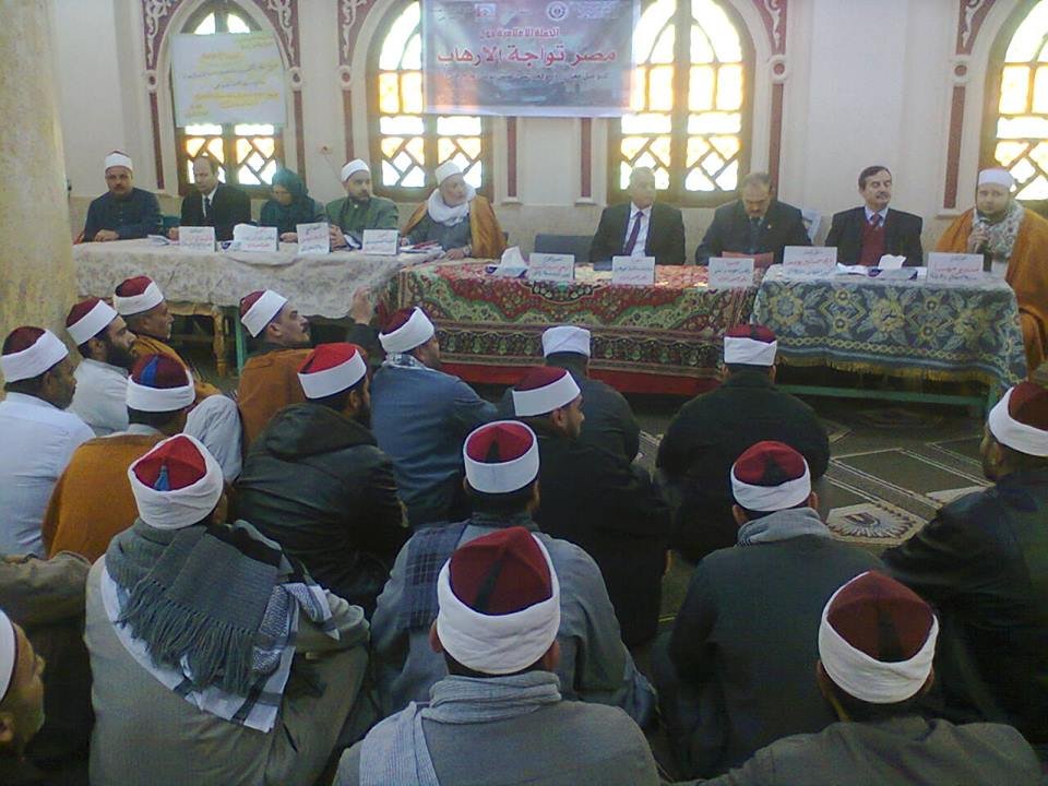 ثم تحدث الشيخ السيد أبو عسل مدير عام أوقاف زفتى موضحاً ان العلماء هم منارة العلم و مقدمو الفكر يُسمع لهم لارتقائهم منبر رسول الله ( ص ) ، وأضاف ان المرحلة التى مرت بها مصر من استغلال المنبر وتوجيهه الى فكر معين ليس بدين و كل ما نسمعه من آراء هو عبارة عن فكر وليس أصل من أصول الدين ، وأكد ان الشعب المصري متدين بطبعه .