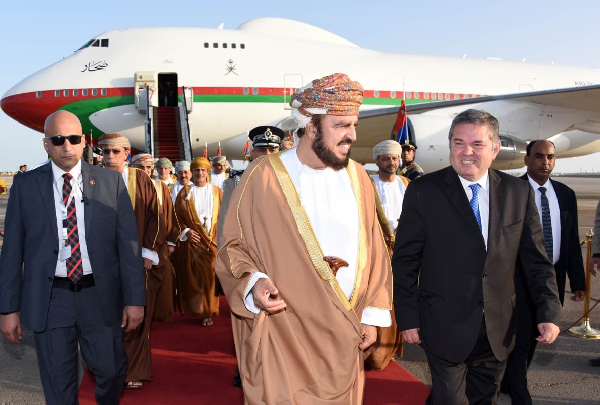 وكان في استقباله والوفد المرافق له لدى وصولهم مطار شرم الشيخ الدولي هشام توفيق وزير قطاع الأعمال ، و السفير الدكتور علي بن أحمد العيسائي سفير السلطنة المعتمد لدى مصر ومندوبها الدائم لدى جامعةالدول العربية، وعدد من أعضاء سفارة السلطنة في مصر .