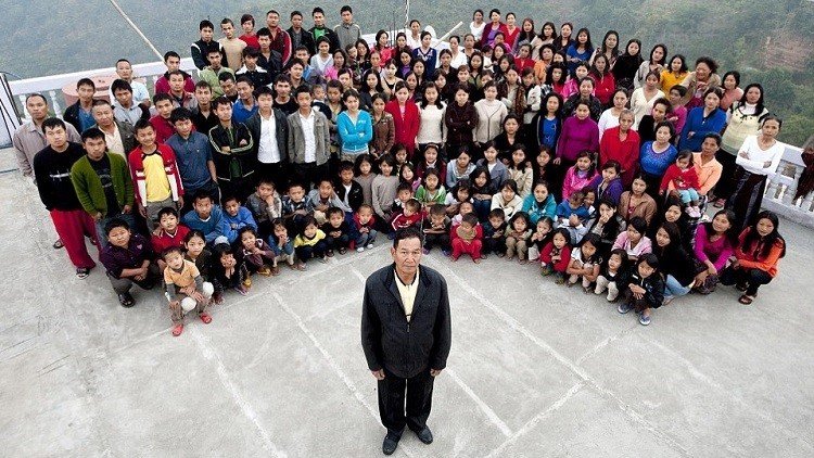 يعد الرجل الهندي زيونا تشانا صاحب أكبر عائلة في العالم والتي تتكون من 39 زوجة و94 طفلا و33 حفيدا.