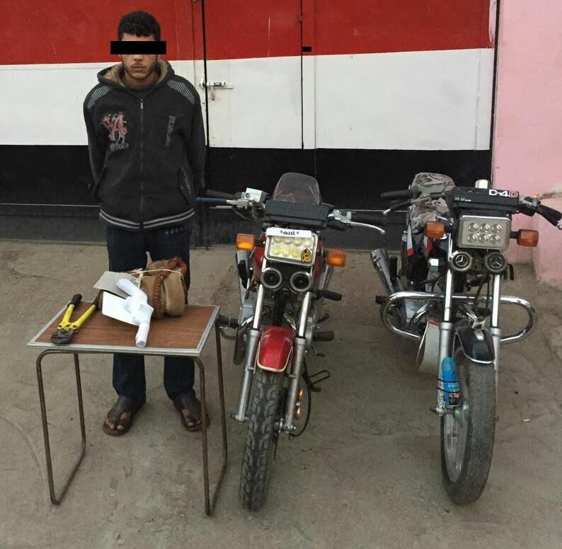 1- أحمد عبد اللطيف عوض فرحات س 27 عاطل 2- أحمد عابد موسي سلطان س 20 عاطل 3- محمد مصطفي سلامة أحمد س 22 عاطل .. ويقيمون قرية ” أبو داود السباخ ” دائرة مركز تمي الأمديد – تحت إشراف اللواء / مصطفى النمر مدير أمن الدقهليـة.وبتقنين الإجراءات وعمل عدة أكمنة ميدانيه ثابتة ومتحركة أسفرت عن ضبط المتهم الثاني حال إستقلاله دراجة نارية بدون لوحات معدنية وبحوزته سلاح ناري [ فرد خرطوش وطلقة من ذات العيار ] ومقص حديدي .. وبمواجهته بما أسفرت عنه التحريات أقر بصحتها وإعترف بحيازته للسلاح الناري بقصد إرتكابه ورفاقه لجرائم سرقات الدراجات النارية وإستخدام المقص الحديدي في ذلك وإعترف بإرتكابهم الوقائع الآتية :- 1- واقعة سرقة دراجة نارية بدون لوحات معدنية ماركة هاوجيانج حمراء اللون والمحرر عن سرقتها المحضر رقم 20928 جنح مركز أبو كبير – شرقية في 29/8/2016م عن بلاغ / الشافعي متولي إبراهيم خليل س 27 فني ألوميتال ومقيم قرية ” بيشه قايد ” دائرة مركز الزقازيق 2- واقعة سرقة دراجة نارية بدون لوحات معدنية ماركة حلاوة إكسبريس سوداء اللون والمحرر عن سرقتها المحضر رقم 5762 جنح قسم ثان العاشر شرقية في 21/8/2016م عن بلاغ / أحمد محمد إبراهيم محمد ومقيم أولاد صقر – الشرقية – وإعترف بأن الدراجة النارية المضبوطة بحوزته متحصله من الواقعة الأولي وبإرشاده تم ضبط الثانية .. وتحرر عن ذلك المحضر رقم 19 أحوال مركز تمي الأمديد لسنة 2016م