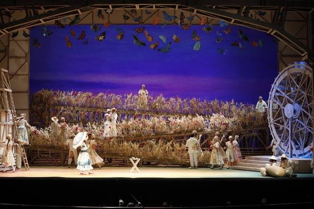 وقبل ذلك تجبر على إدراك أنها تحب نيمورينو رغم كل شيء وأخيرا يتزوجان، لينتهي العرض نهاية سعيدة، وتمتزج أحداث هذه الأوبرا الكلاسيكية الشهيرة لدونيتزيتي مع الرؤية المبدعة للمخرج ميكيلي ميرابيلا، واللوحات المصممة بعناية، وأداء كبار الفنانين، والملابس الزاهية المتقنة لأهم مصممي الأزياء مثل أليدا كابيليني وجوفاني ليكيري.