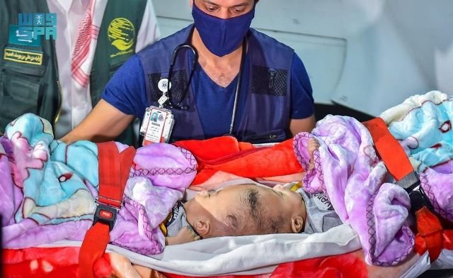 ونُقل التوأم السيامي فور وصولهما إلى مستشفى الملك عبدالله التخصصي للأطفال بوزارة الحرس الوطني لدراسة حالتهما والنظر في إمكانية إجراء عملية فصلهما.