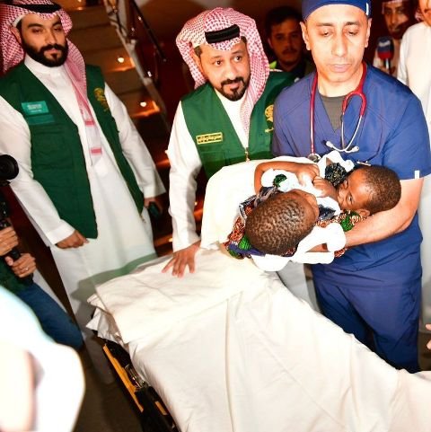 إنفاذًا لتوجيهات خادم الحرمين الشريفين الملك سلمان بن عبدالعزيز آل سعود وصاحب السمو الملكي الأمير محمد بن سلمان بن عبدالعزيز ولي العهد رئيس مجلس الوزراء -حفظهما الله- وصل أمس إلى مطار الملك خالد الدولي بالرياض التوأم السيامي التنزاني “حسن وحسين” برفقة والدتهم، قادمين من مدينة دار السلام في جمهورية تنزانيا عبر طائرة الإخلاء الطبي، حيث نُقل التوأم فور وصولهما إلى مستشفى الملك عبدالله التخصصي للأطفال بوزارة الحرس الوطني؛ لدراسة حالتهما والنظر في إمكانية إجراء عملية فصلهما.
