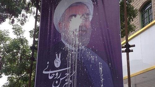 أن بعد المناظرة لمرشحي الانتخابات الرئاسية ، تعرضت اللوحات الدعائية لحسن روحاني في طهران وبعض المدن الأخرى للتشويه والتمزيق الليلة الماضية.