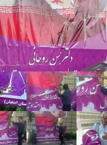 در اصفهان نیز یکی از بنرهای آخوند شیاد روحانی از سوی مردم به جان آمده پاره شد که با آن تحریم انتخابات قلابی رژیم را همانطور که در فراخوان ارتش آزادیبخش ملی ایران آمده است؛ به نمایش گذاشتند.
