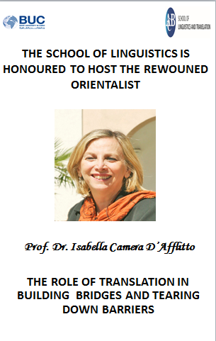 صرح الدكتور حسين محمود عميد كلية اللغات والترجمة بجامعة بدر وأستاذ الأدب الإيطالي أن كلية اللغات والترجمة بجامعة بدر بالقاهرة تحتفل بافتتاح العام الأكاديمي 2018\2019 بمحاضرتين لاثنتين من أبرز علماء اللغات والأدب في العالم، هما المستعربة الإيطالية الكبيرة إيزابيللا كاميرا دافليتو والتي تتحدث عن دور الترجمة في بناء الجسور وهدم الحواجز بين الشعوب، ومعها المفكرة المصرية وأستاذة الأدب الإنجليزي راندة أبو بكر والتي تناقش التدخلات التشاركية في الترجمة والسرد في العالم الرقمي وما ينطوي عليه من وسائل التواصل الاجتماعي.