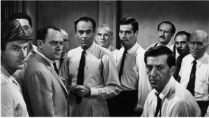 يقص الفيلم قصة 12 رجلاً يقومون بدورهم كهيئة محلفين في قضية قتل. أبن متهم بقتل أبيه وتبدو الأدلة دامغة للجميع عدا رجلاً واحداً، يرى أن الأمر ليس بهذه البساطة! يدور الفيلم بالكامل في غرفة واحدة، ينتقل الحديث بسرعة ورشاقة بين الشخصيات. ترى ما هو شعورك وأنت تقف أمام 11 رجلاً مقتنعين بأنك على خطأ؟ هذا ما ستراه في هذا الفيلم المميز. الفيلم عائلي بالطبع وممتع جداً.