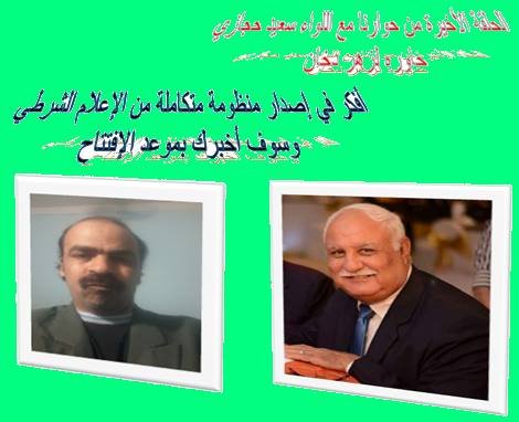 الحلقة الأخيرة من حلقات حوارنا مع اللواء سعيد حجازي الخمسة. وحرصاً على الوصول إلى رأي سيادته حول حرية التعبير. كنتُ قد بدأتُ الحلقة الماضية بالكلام عن تجربته في الصحافة ككاتب. وفي هذه الحلقة بدأنا الحوار بهذا السوؤال(إذا كنت تقتنع بضرورة إغلاق قناة الجزيرة الإخبارية القطرية العربية الجماهرية. فمن فضلك قل لنا وللسادة القراء ما سبب هذه الضرورة …)