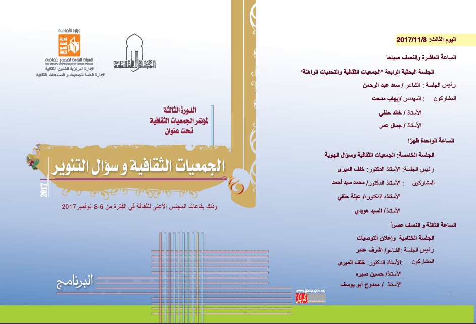 وتعزيزًا لهذا التوجه فقد ارتأت الإدارة العامة للجمعيات إعلانها عن انعقاد الدورة الثالثة لمؤتمر الجمعيات الثقافية تحت عنوان (الجمعيات الثقافية وسؤال التنوير) وذلك في الفترة من 6 إلى 8 نوفمبر بقاعات المجلس الأعلى للثقافة.