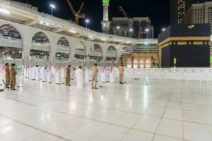 طبّقت الرئاسة العامة لشؤون المسجد الحرام والمسجد النبوي الإجراءات الاحترازية بالتباعد الاجتماعي بين المصلين، وذلك خلال أداء صلاة التراويح في المسجد الحرام، وذلك تطبيقاً للإجراءات الوقائية التي تؤكد على التباعد بين الأفراد.