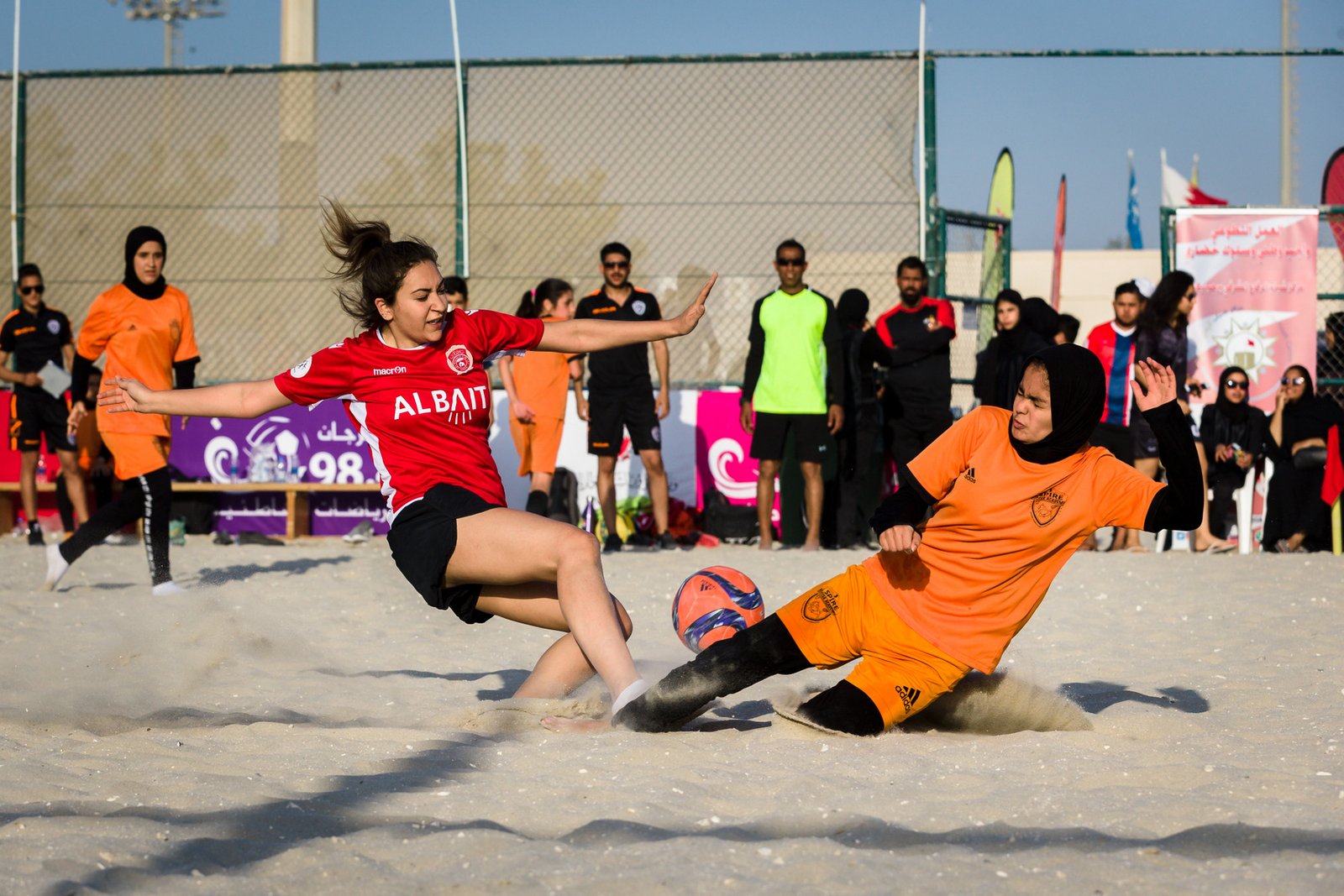 حسمت فرق أكاديمية تيكرز، أكاديمية القلعة (ب)، أكاديمية سباير وأكاديمية سوبر سوكر (أ) تأهلها إلى الدور نصف النهائي من مسابقة الفتيات لكرة القدم في بطولة 98.4 للألعاب الشاطئية للمراكز الشبابية في نسختها الرابعة التي تنظمها وزارة شؤون الشباب والرياضة بمناسبة ذكرى ميثاق العمل الوطني على ملعب الاتحاد البحريني لكرة القدم.