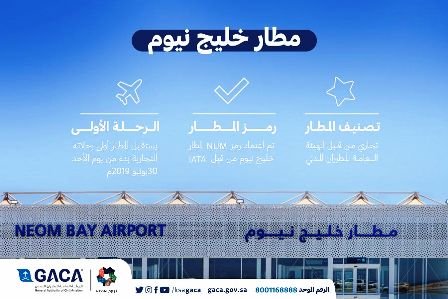 أعلنت الهيئة العامة للطيران المدني اليوم، عن افتتاح مطار خليج نيوم الواقع في منطقة شمال المملكة.