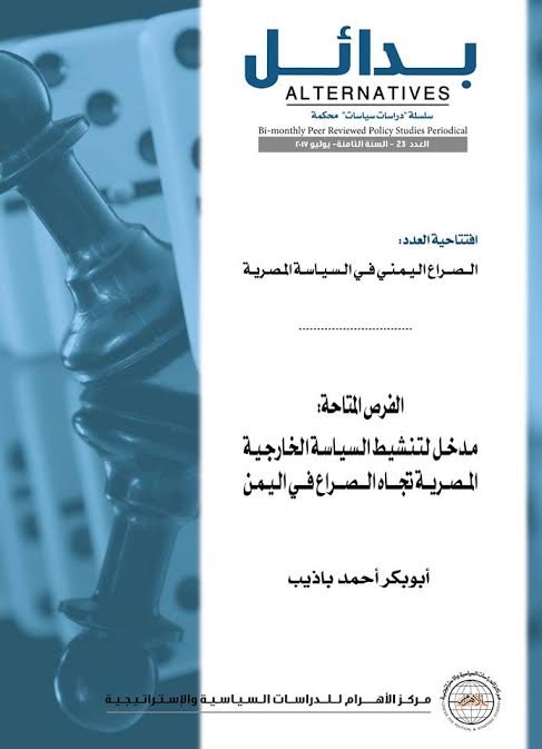 يناقش العدد الجديد من دورية “بدائل” التي تصدر عن مركز الأهرام للدراسات السياسية والاستراتيجية، قضية السياسة الخارجية المصرية تجاه الصراع في اليمن، حيث تقدم الدراسة ثلاث توصيات لتنشيط المواقف المصرية تجاه اليمن.