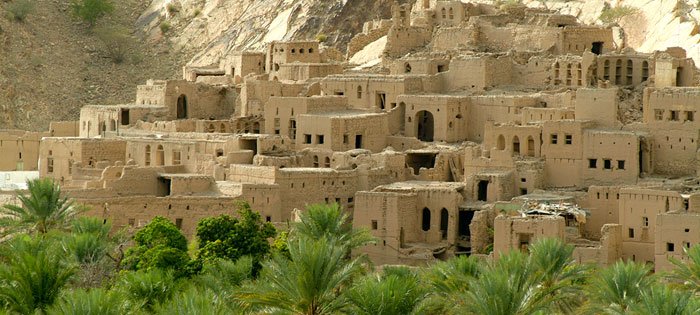 يتردد صدى تاريخ عُمان في آجر الطين والنقوش المجصصة وحجارة معمارها الدفاعي وهناك ما يربو على الألف من القلاع والحصون وأبراج المراقبة التي تظل