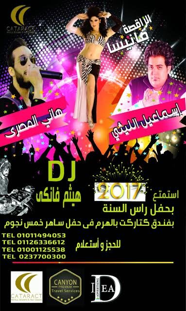 يستعد كلا من الفنان المبدع “اسماعيل الليثي ”والراقصة فانيسا و المطرب” هاني المصري “لإحياء حفل رأس السنة بفندق كتاركت بالهرم