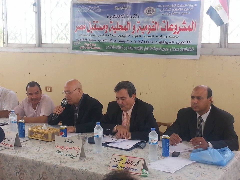 فى إطار التعاون المشترك بين مجمع الإعلام ومجلس مدينة زفتى و الوحدة المحلية بسنبو الكبرى عقد مركز إعلام زفتى ندوة إعلامية تحت عنوان ” ♫♫ المشروعات القومية و المحلية و مستقبل مصر “♫♫ بقاعة مركز شباب سنبو الكبرى. استهدفت الندوة إلقاء الضوء على أهمية المشروعات القومية .
