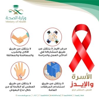 تحتفي المملكة ضمن منظومة دول العالم باليوم العالمي للإيدز الذي يصادف الـ1 من ديسمبر من كل عام، بهدف زيادة الوعي بفيروس نقص المناعة البشرية، وإظهار التضامن الدولي في مواجهة هذا الوباء، حيث يعد من أشهر الأيام العالمية وفرصة رئيسية لزيادة الوعي، ويمكن السيطرة على الفيروس مع الرعاية الطبية المناسبة.