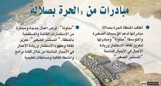 تواصل حكومة سلطنة عُمان طرح مبادرات مبتكرة للاستثمار وتنويع مصادر الدخل الوطني، حيث دشنت المنطقة الحرة بصلالة هويتها التجارية الجديدة وأطلقت مبادرتها لدعم المؤسسات الصغيرة والمتوسطة (مناولة) ومبادرتها لتعزيز ثقافة الاستثمار وريادة الأعمال في الأجيال الناشئة (المستثمر الصغير) وتمكنت المنطقة من توطين 87 اتفاقية حق انتفاع بحجم استثماريقدر بـ8.7 مليار دولار أمريكي، وحجم القوى العاملة المباشرة في المنطقة الحرة وصلت إلى 2198 موظفا محققين نسبة تعمين تقدر بـ 36 في المائة.