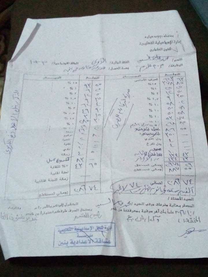 اعمل معلم اول علوم بالاسماعيلية واتضرر من خفض الراتب الاساسى من 623 الى 572جنية وماترتب على ذلك من خصومات وعجزت عن الحاق ابنتى الوحيدة بمدرسة حكومية تجريبية