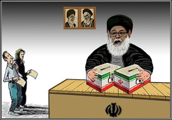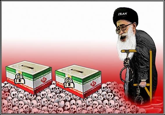 اصبح مسرحية انتخابات في إيران مجال لخلق رسامي الكاريكاتيرات الجدد ويناشد جميع المواطنين هذه الإيام اي قبل الإنتخابات لمقاطعة الإنتخابات. انهم يقولون صوتنا هو اسقاط