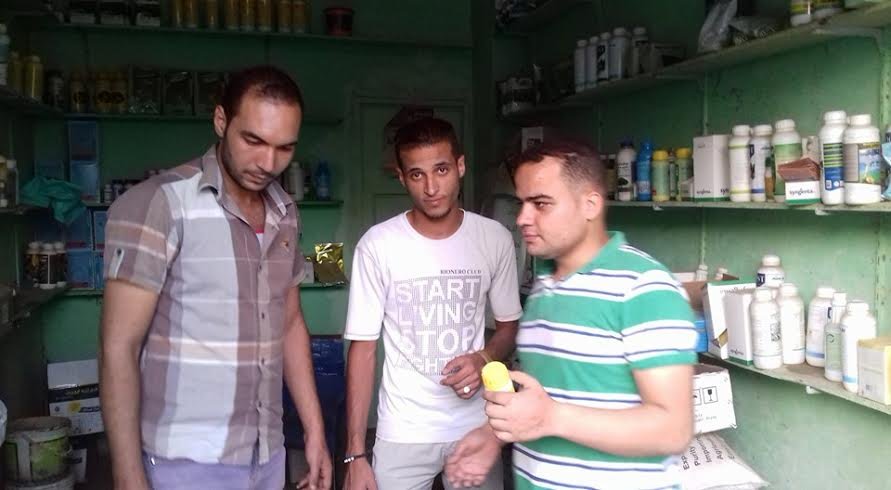 بيع وتداول المبيد السام والمعروف بإسم “حبة الغلة القاتلة” حملة طرق أبواب على بعض محال المبيدات الزراعية المتواجدة فى مدينة بنى عبيد والتى تباع بها هذا المبيد السام حيث قاموا بحصر أسماء الشركات الأجنبية  المنتجة لـ هذه الحبة القاتلة إلى جانب تحذير البائعين من خطورتها