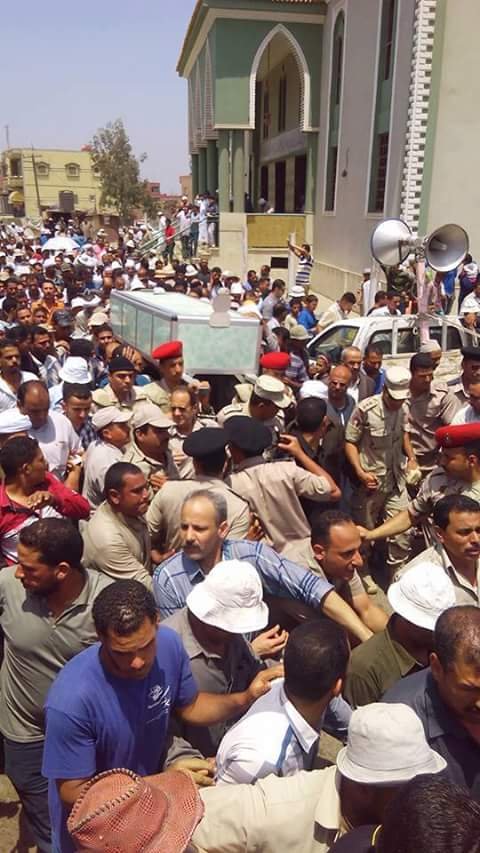بالقوات المسلحة، إلى مثواه الأخير بمقابر أسرته بالقرية، والذي استشهد إثر انفجار عبوة ناسفة بمنطقة الماسورة في رفح بشمال سيناء . شارك في تشييع الجثمان الآلاف من أهالي مركز صان الحجر، وزملاء الشهيد، وعدد من القيادات الأمنية والتنفيذية والشعبية. وتعالت هتافات المشيعون المناهضه للإرهاب والمطالبة بالقصاص من القتلة وإعدامهم في ميدان عام حتى يكونوا عبرة لغيرهم.