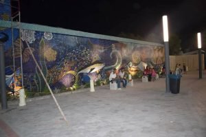 عمل لوحة جدارية متناغمة مع الميدان لتكتمل الصورة الجمالية له ويجعله تحفة فنية وحضارية وتم تفقد الميدان . اليوم من اعمال التطويروتركيب حمامات عامة لائقة للاهالى بالميدان وكذلك وفرحة الاهالى به والاستمتاع بالجلوس على المقاعد ليلا بالميدان