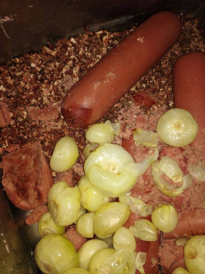 – كما تم التحفظ علي كمية كبيرة من اللانشون منتج نهائي معد للبيع داخل المصنع معبأ داخل أجوله أوزان مختلفة بعضها بدون بيانات بإجمالي وزن ( 17 طن ) تقريباً .