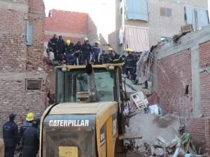 بالصور : انهيار عقار من 4 طوابق و إنقاذ ثلاثة أشخاص وإنتشال جثتين بالمنصورة