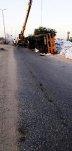 وقع اليوم حادث انقلاب سيارة تريلا دون وقوع اصابات ادى الى إغلاق الطريق امام شركة المضارب بالمحله