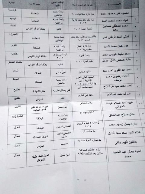 وكان العدد المنهى اوراقه فى التنظيم والادارة هز ٣٢٤٩ منهم اوراق ٢٠ وفيات و ١٧ تم ارجاء التثبيت لحين انهاء الاوراق اللازمة ومرفق اسماء ال ١٧ والادارة التعليمية وسبب الارجاء..