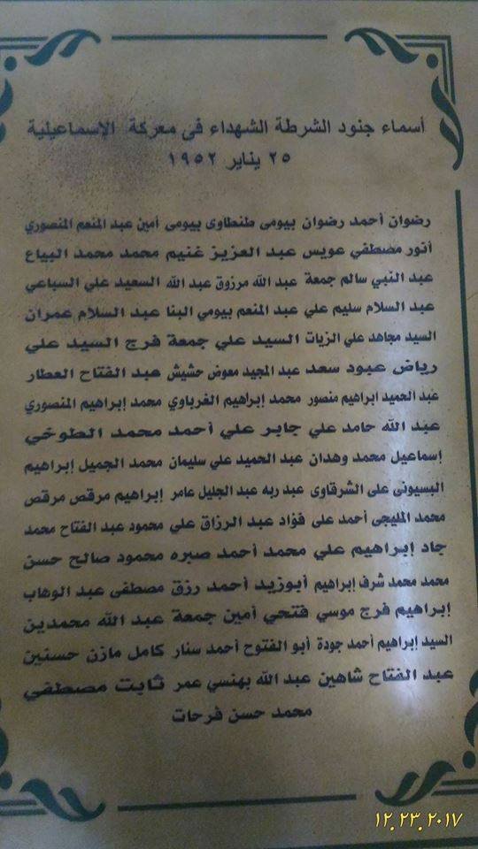– تحيا الشرطة المصرية التي ألهمت شعب مصر روح الثورة الكبري التي كادت تقوم في اليوم التالي لموقعة الإسماعيلية فأجهضها إخوان بريطانيا الصغري بإشعال حريق القاهرة … ولكن ما هي إلا شهور وقامت ثورة 23 يوليو علي أكتاف جيش مصر خير أجناد الأرض وشعبها العظيم …