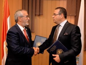 وقع أ.د محمد القناوى رئيس جامعة المنصورة برتوكول تعاون مع وفد الجامعة الليبية الدولية للعلوم الطبية ببنغازى يضم الوفد أ.د محمد سعد امبارك رئيس الجامعة ، أ.د السنوسى طاهر وكيل الجامعة للشئون الأكاديمية ، أ.د مصطفى الفخرى وكيل الأكاديمية للدراسات العليا والبحوث ، الأستاذ محمد حبيب الكاتب الصحفى