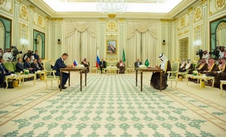 شهد خادم الحرمين الشريفين الملك سلمان بن عبدالعزيز آل سعود – حفظه الله – وفخامة الرئيس فلاديمير بوتين رئيس روسيا الاتحادية اليوم، فعالية شراكة الطاقة السعودية الروسية، وتوقيع ميثاق التعاون وتبادل اتفاقيات بين حكومتي المملكة العربية السعودية وروسيا الاتحادية، بحضور صاحب السمو الملكي الأمير محمد بن سلمان بن عبدالعزير ولي العهد نائب رئيس مجلس الوزراء وزير الدفاع.
