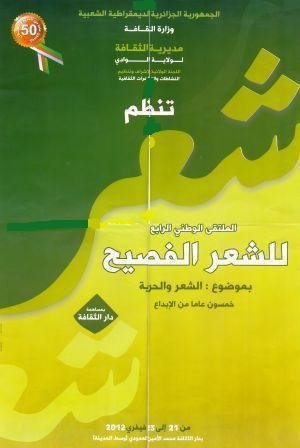 يُنظم في الجزائر الملتقى الوطني التاسع للشعر الفصيح . الملتقى تحتظنه ولاية شاعرة من ولايات الجزائر الشاعرات ال48 . في ولاية وادي سوف ،وبدار ثقافتها محمد لمين العمودي