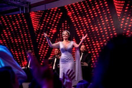 وأطلت الفنانة سوبر ستار العرب خلال الحفل مرتدية فستان من المصممة الكويتية بدور الحبيت وتزينت  بتاج مرصع من قبل المصمم عامر عطا خصيصا لهذه المناسبة ، وقدمت العديد من الأغاني الجديدة والقديمة وتفاعل معها الجمهور بشكل كبير ، بتفاعل الجمهور مع تلك الأعمال الغنائية الرومانسية .