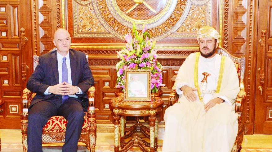في سلطنة عمان استقبل السيد أسعد بن طارق آل سعيد نائب رئيس الوزراء لشؤون العلاقات والتعاون الدولي والممثل الخاص لجلالة السلطان بمكتبه ، جياني أنفنتينو رئيس الاتحاد الدولي لكرة القدم “الفيفا”.