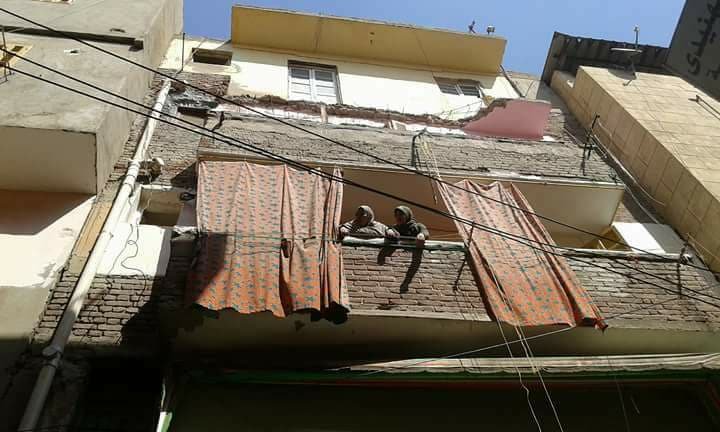 سقوط بلكونه احد الشقق السكنيه واصابة شخص بالمحلة