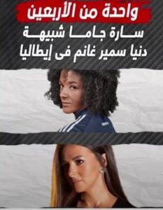 وتفاعل رواد مواقع التواصل الاجتماعي مع الصور التي تظهر الشبه بين دنيا سمير غانم و لاعبة فريق يوفينتوس الإيطالي لكرة القدم النسائية، اللاعبة الإيطالية سارة جاما، التي تبلغ من العمر 33 سنة.