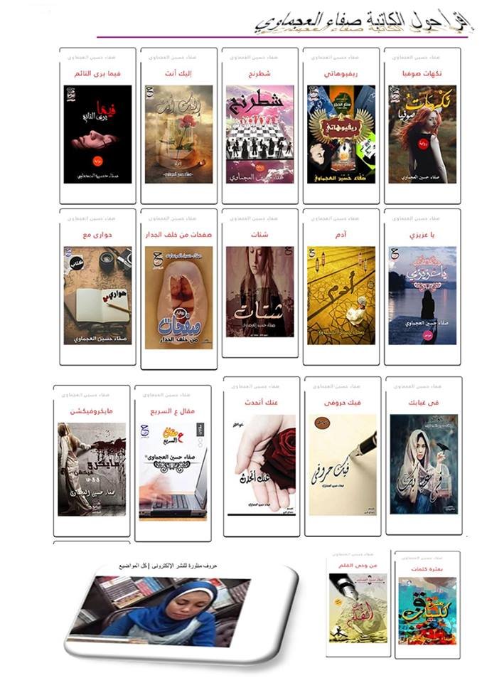ستطلق دار حروف منثورة للنشر والتوزيع قريباً. ديوانيين من شعر الفصحى في كتابٍ واحد . للشاعرة المصرية صفاء حسين العجماوي. يقع الكتاب في أكثر من مئتي صفحة من القطع المتوسط . ويضم أكثر من ثمانين قصيدة فصحى ، تتنوع بين الرومانسية والإجتماعية . والذاتية والحالة الإنسانية العامة.