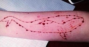 أثناء الكشف على المصابة، تلاحظ للطبيبة المعالجة رئيس قسم السموم بالمستشفي الرئيسي الجامعي، وجود وشم عبارة عن حرف p على الساق اليسرى للمصابه المذكورة، وقيام المصابة بالافصاح لها – عقب إفاقتها- بأنها تمارس لعبة “الحوت الأزرق” عبر الإنترنت والتى تتضمن فى مراحلها رسم وشم حرف p “رمز اللعبة ” على الساق اليسرى، وتناول مبيد حشرى.
