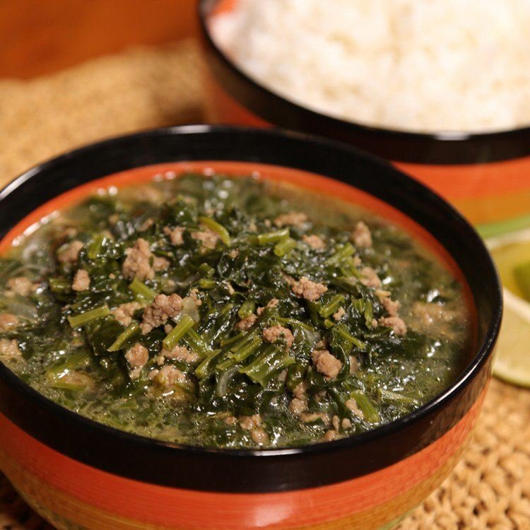 يقدم السبانخ مع طبق من الأرز المفلفل