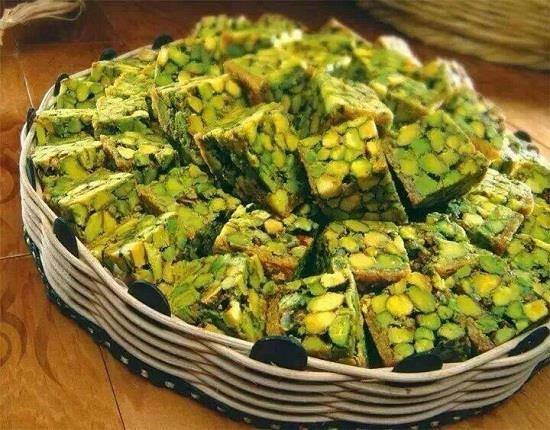 2- يضاف القطر أو الشربات على الفستق بحيث أن يكون كافي للتغطية و للتماسك و يقلب