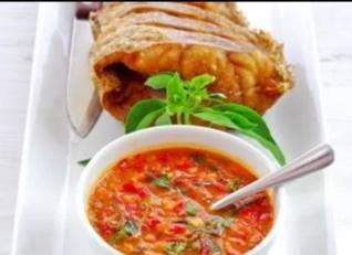 ثم نضيف الخل وعصير الطماطم ونتبل بالملح والفلفل ويترك على نار هادئة حتى يسمك قوامة.