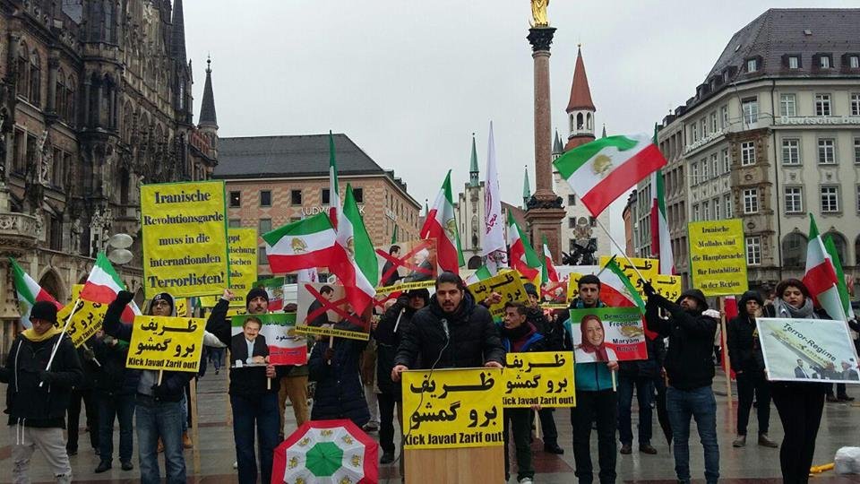 في أعقاب دعوة ممثل المجلس الوطني للمقاومة الايرانية لعقد مظاهرات احتجاجية في ساحة ماربن بلاتش في ميونخ ضد مشاركة وزير خارجية النظام الايراني جواد ظريف في المؤتمر الامني في ميونیخ فی یوم الجمعة ١٦ فبراير ٢٠١٨ أعرب المتظاهرون عن تضامنهم مع الانتفاضة الشعبية في داخل ايران وطالبوا بإخراج جواد ظريف من مؤتمر ميونيخ.