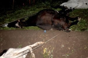 وعندما ذهبت معهم للأسف وجدت مأساة وكارثة سقوط عدد من أعمدة التيار العالى وهى فى حالة صعبة ومتهالكة على إحدى الأراضى الزراعية مما أسفر عن مصرع ثلاث من الماشية وإصابة طفل كما هو موضح بالصور حيث قال العرباوى صاحب الماشية المتضرر أنه فوجئ بالعواصف الكثيفة والرياح الشديد وفوجئ بوقوع سلك كهرباء الضغط العالي على الارض الزراعية المتواجدين بها وأثناء خروج الماشية للرعى سقطت السلك عليهم مما أدى إلى نفوقهم فى الحال وقد لطف الله بقدرته وجلاله على الاطفال الذين كانوا يرعون الماشية بالقرب من هذا السلك المرمي على الارض وللأسف لم يفصل منه التيار الكهربائي إلى بعد ساعتين