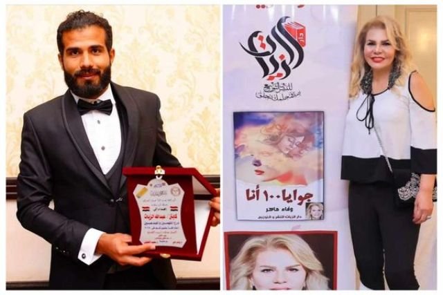 هنآ “عبدالله الزيات” لاعب ومدرب الأهلي السابق المدرب الحالي لنادي الثقبة السعودي، صديقته الكاتبة الإعلامية وفاء ماهر مدير مهرجان الفضائيات العربية بتوقيع كتابها الجديد جوايا 100 أنا ،
