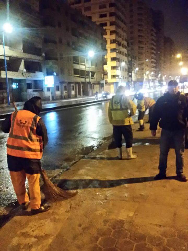 قامت الوردية الليلة قطاع الخدمات المميزة بشركة نهضة مصر وبناءا على تكليفات المهندس محمد عبد الظاهر محافظ الإسكندرية بأعمال نظافه وتجربف أتربة بطريق وطول شارع قناه