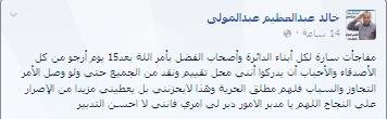 كما اشار إلى ذلك عبر صفحته الشخصيه عبر مواقع التواصل الاجتماعى ” الفيس بوك ” والتى كانت نصها كالتالى:-