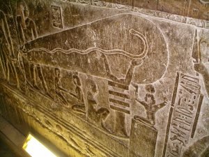 = ظهر الدجيد بمعبد دندرة ضمن نقوش لمصابيح كهربائية ضخمة مرتبطة بوصلات تشبه الكابلات الكهربائية كأساس لصناعة المولدات الكهربية”.